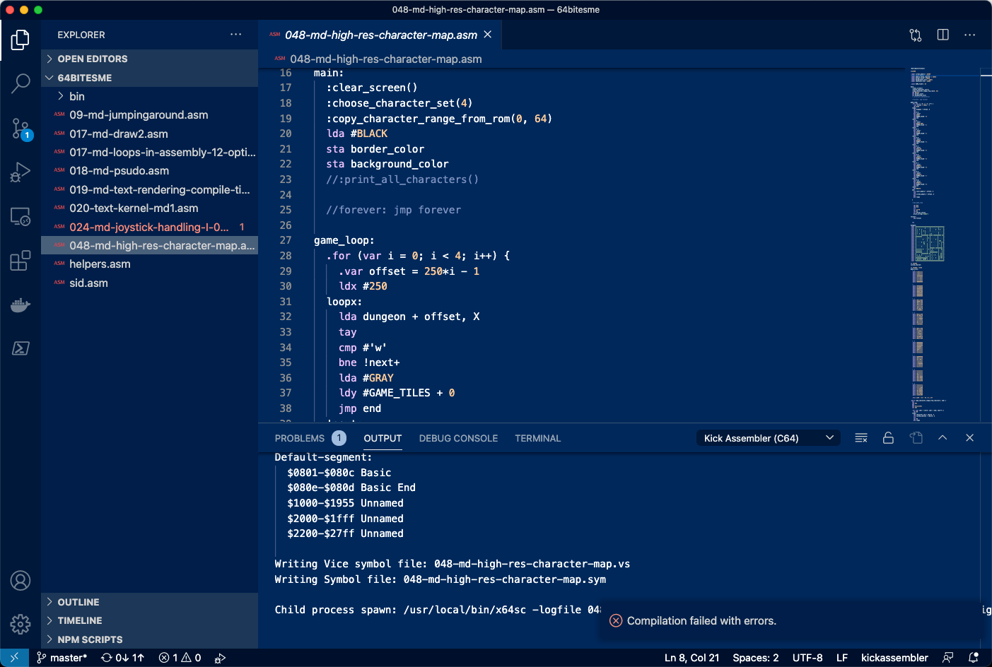 First is that it uses KickAssembler exclusively. KickAssembler is really REALLY GREAT…