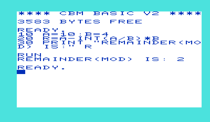 Quick Post: Modulus in BASIC 2 without a cartridge