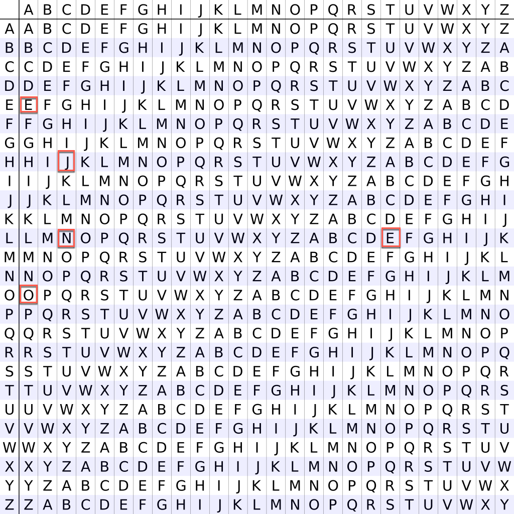 I enjoy using these classical ciphers a lot. This one requires nothing but the table and a pencil, so it’s a fun one to introduce people to the world of cryptography.