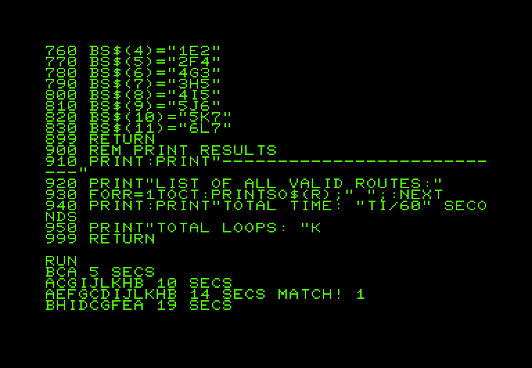 920 PRINT"LIST OF ALL VALID ROUTES:"
