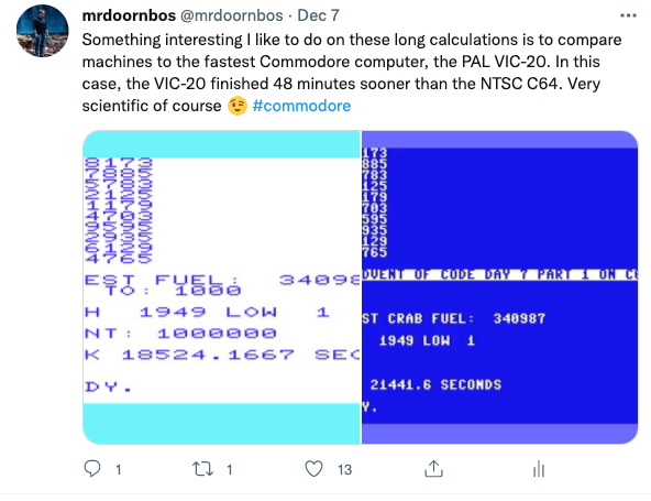 Even when I need to resort to 2.6Ghz and 16GB of RAM, it’s still fun and I can’t recommend this Advent of Code site enough.