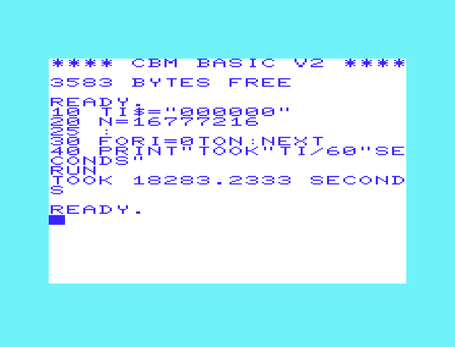 If you’re at all familiar with BASIC, you can even just use a stopwatch to find that