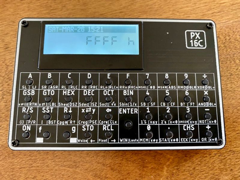 I stumbled on a kit that runs an emulated HP-16c and took the plunge. It was about 1/4 of the price of even the cheapest original devices on eBay and with an aluminum frame, it looked worth a try. Plus, there’s something cool about assembling things yourself.