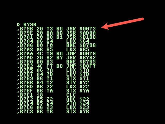 This will actually work on all of the BASIC versions, it’s just slower. I couldn’t quite figure out the ROM routine for entry like I found on the VIC-20 and C64. If you know how do to this, please let me know.