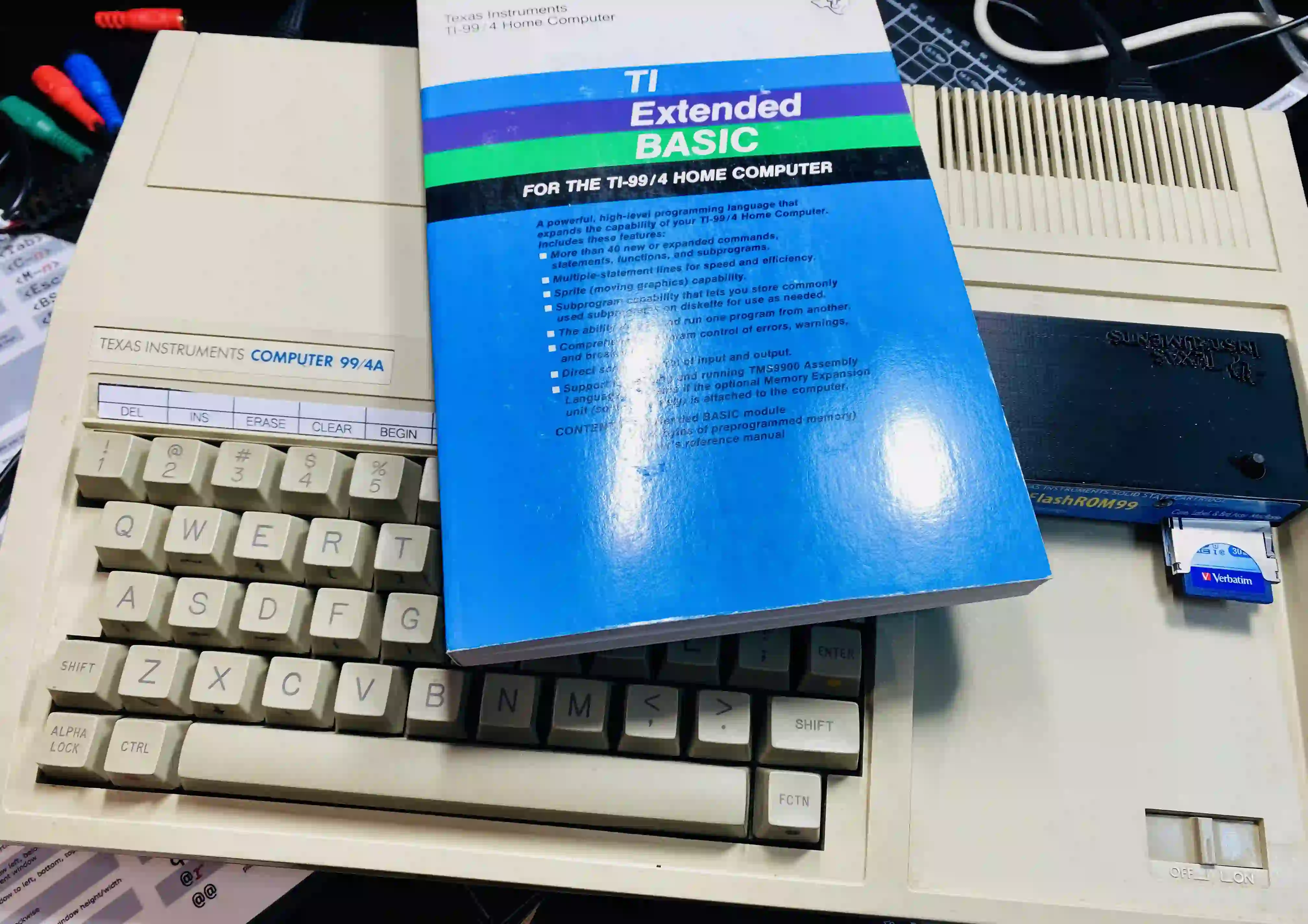 TI BASIC doesn’t have straightforward string manipulation, so we’ll use the Extended Basic Cart to make this more palitable. I’m not a TI person so I’m not sure if this is the best way to do this, but it works.