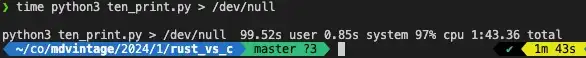 time python3 ten_print.py > /dev/null