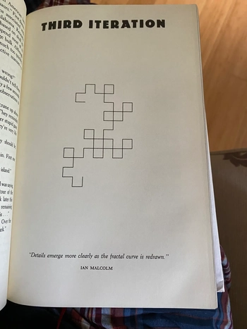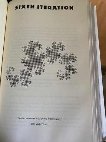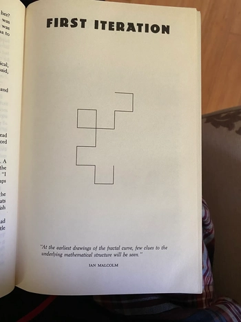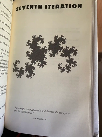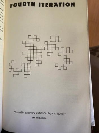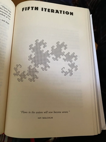 The book is also full of mathematical concepts, like chaos theory, fractals, and self-similarity.